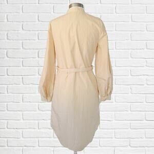 Calvin Klein Yellow Stripe Shirt Dress Size 4 Easy Fit Long Bishop Sleeve NWOT