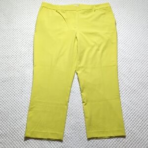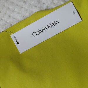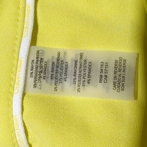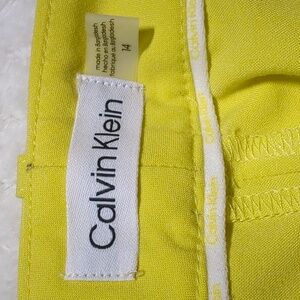 Calvin Klein Yellow Suit Dress Pants. Size 14. NWT, never worn, no damage. Bright yellow color. Hook, button, and zipper closures on the front. Belt loops. 2 pockets on the front and 1 pocket on the back that is still sewn shut. Straight wide legs. High rise. Ankle length. Very little stretch.