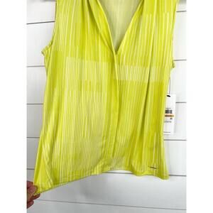 Calvin Klein T447M31G Yellow VNeck Striped Sleeveless Blouse Petite Small