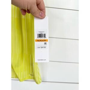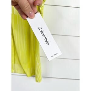 This Calvin Klein blouse blends style and comfort with its striking yellow and white striped pattern. The V-neck and sleeveless design are flattering and versatile for work or play. Petite Small offers a tailored fit for a polished look every time.