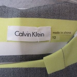Stylish striped dress by Calvin Klein. Features yellow and gray stripes. Perfect for casual or office wear.