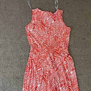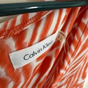 Make a bold statement with this Calvin Klein zebra print jumpsuit. Designed for both style and comfort, it features a striking orange and white pattern, a flattering wide-leg silhouette, and a comfortable elastic waist. The stretch fabric ensures a perfect fit that moves with you. Ideal for a night out or a special event, this jumpsuit pairs effortlessly with heels for a sophisticated, eye-catching look. A true standout piece that combines modern design with effortless wear.