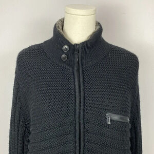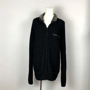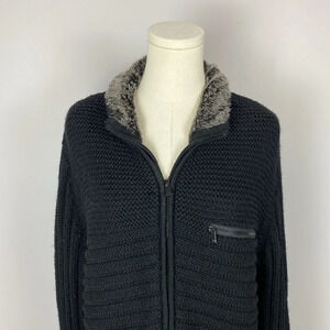 🌸Calvin Klein Zip Front Sweater with faux fur collar size large