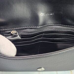 This Calvin Klein crossbody bag combines modern style with everyday practicality. Crafted in a textured black finish, it features a structured rectangular silhouette topped with a magnetic flap for a clean, elegant look. The subtle embossed "cK" logo adds a touch of sophistication without being flashy.