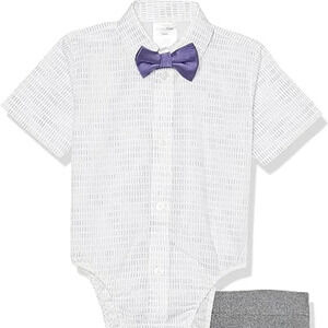 Short Sleeve Collared Dress Shirt Onesie, Pants, Bow-tie