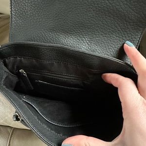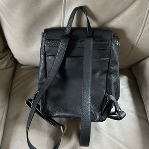 Mini black leather backpack! Great for day trips or traveling. Good condition, inside is clean and has pockets