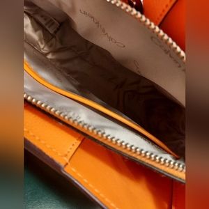 brand new never used or put anything into it. not sure why I took of tags. adjustable strap tons of compartments. cool orange color. have to many bags!