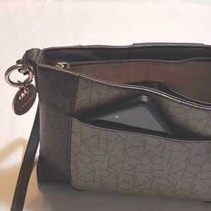 2 unzippered pockets and 1 zippered pocket on the inside.