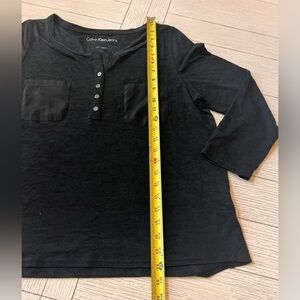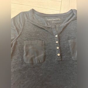 Calvin Klein basic black T with front pockets, button front. Size L