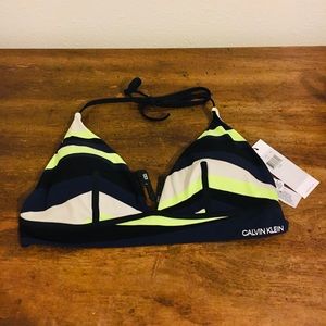Brand New Calvin Klein bikini. Bottom is medium and top is large. They run pretty small though. I wear a 34B and usually a small in top and bottom.