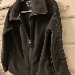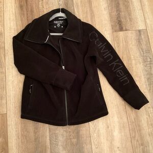 Elegant black jacket with zip closure. Calvin Klein branding on sleeve. Cozy and fashionable.pictures doesn’t make justice of the quality of this jacket , very warm and clean excellent condition