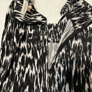 Calvin Klein black and white dress with bell 3/4 sleeves