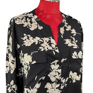 Calvin Klein black & beige floral blouse shirt top button front pockets size XL