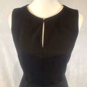 Simple but classy dress with clasp closure keyhole front. Zipper back. Can be worn belted or not belted as shown. Belt not included. EUC