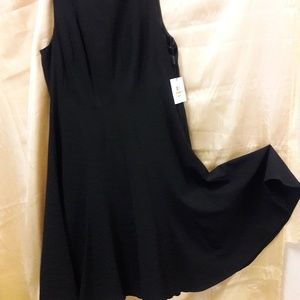 Size 4, NWOT, little black dress with lots of flair! Sleeveless and fully lined. 63% polyester, 33% rayon, 4% spandex. Made from many 'panels' sown together lengthwise for fullness (see photos). Also available in size 16 (NWt-last photo)