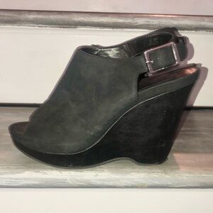 Calvin Klein black platform wedge NADUNA peep toe slingback sandal 9