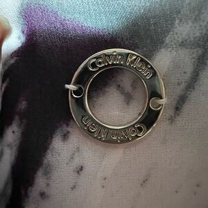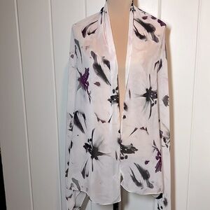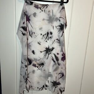 Calvin Klein black & purple abstract flowers white background lightweight scarf