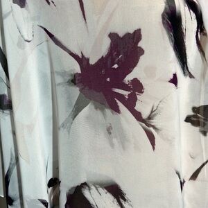 Sheer white background with black grey and purple brushstroke flowers