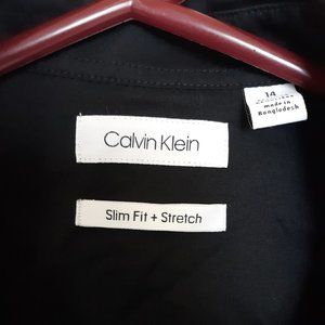 Versatile and flattering black Calvin Klein slim fit shirt. Great foundational wardrobe piece!