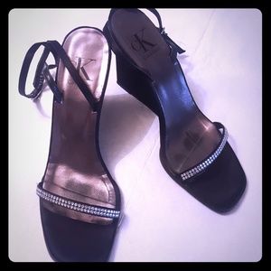 Calvin Klein Elegant rhinestone wedges! Outside material is fabric. Excellent condition! 4" high heels.