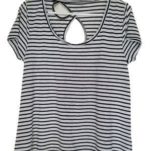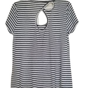 Calvin Klein black white stripe performance top cut out back detail. Short sleeve with high low hemline. Quick dry moisturize wicking fabric. Logo on front along seam line. Chest approx 20 inches laying flat pit to pit. Gently worn in good condition from non smoking home.