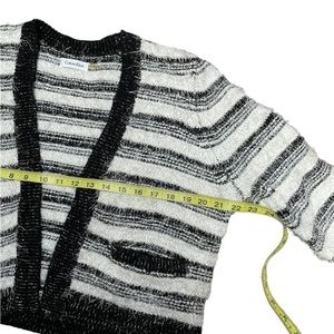 Calvin Klein black white striped textured fuzzy knit cropped open cardigan large