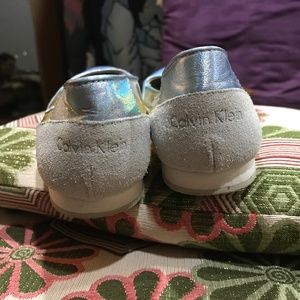 Calvin Klein blue hologram suede and plastic flats 5.5