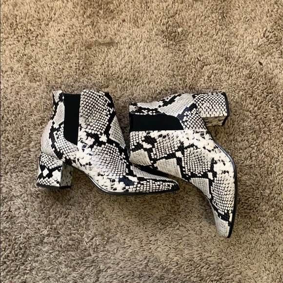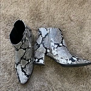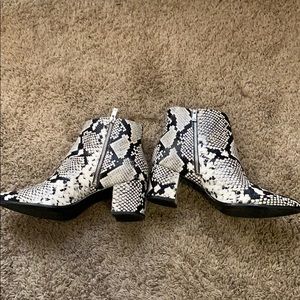 Snake skin patterned ankle boots! super cute, comfortable and in great condition!! :)