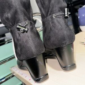 Calvin Klein boots Isila black stretch leather wedge size 7 tall boot