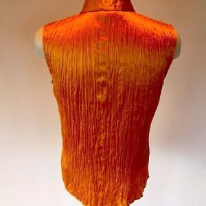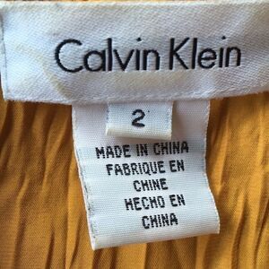 Calvin Klein button down sleeveless gold crinkle top shirt 100% Silk size 2