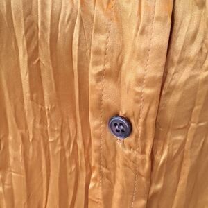 Vintage Button down lightweight 100% silk Calvin Klein gold shirt sleeveless crinkle top shirt blouse size 2