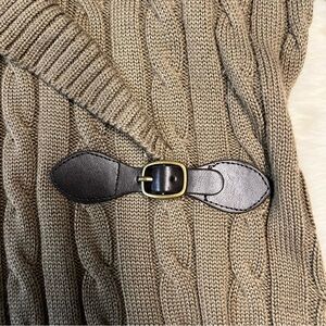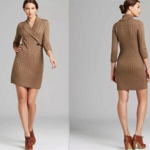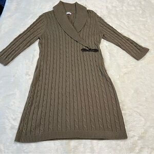 EUC tan cableknit sweater dress. Faux buckle. Very soft with some stretch. Color is closer to model pics than camera pics.