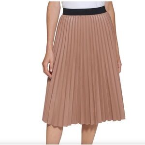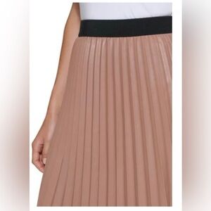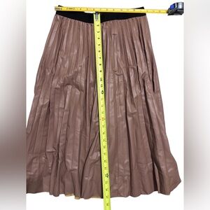 Calvin Klein cafe ole tan Faux Leather Pleated circular swing Skirt size small