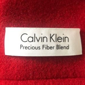 This is a gorgeous cherry red Calvin Klein coat and scarf. This is a beautiful addition to any wardrobe and can spice up any outfit. It is very warm while also being very stylish. Add it to your closet today!! (: