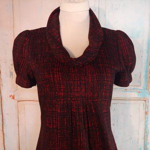 Calvin Klein cow neck princess sleeve stretch fabric zipper dress/size S/red blk