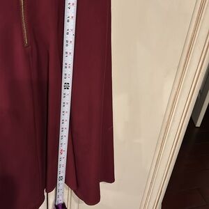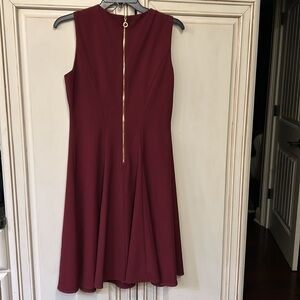 Calvin Klein dress, size 4. Cranberry color with gold zippers, tailored waist and slightly flared skirt.