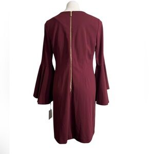 Calvin Klein dress sz 12 Long Bell Sleeve Burgundy red knee length office church
