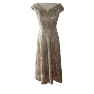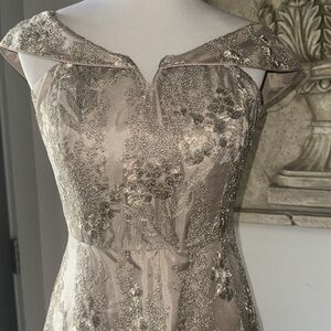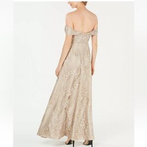 Calvin Klein embroidered off the shoulder tan gown long dress Sz 4