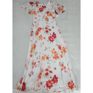 Calvin Klein floral Flutter sleeve Maxi dress white floral Sz 2 Feminine modest