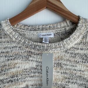 🆕 Calvin Klein fringe sleeve Crewneck long sleeve sweater white and Gray Small