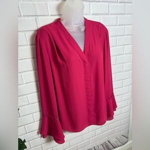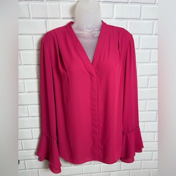 Calvin Klein fuchsia Blouse with Bell Sleeves and Mandarin Collar/size L