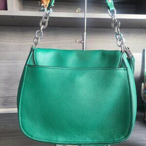 Calvin Klein green pebbled leather shoulder with silver hardware