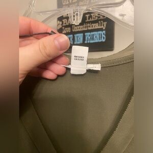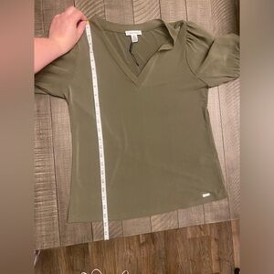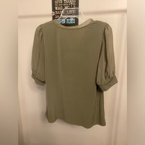 Calvin Klein green v neck blouse with puff sleeves NWOT