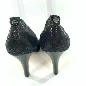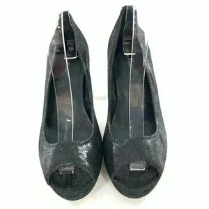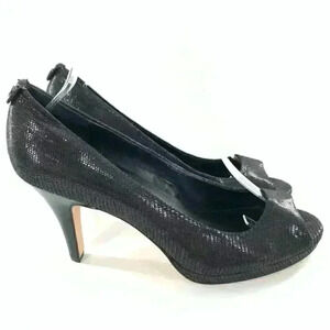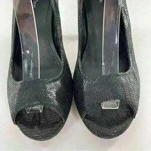 Calvin Klein womens heels size 8.5 Kail black leather snakeskin embossed open toe platforms party