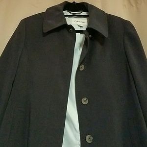 Navy blue jacket with light blue lining enclosed. Shell and lining 100% polyester . Still in good condition, no longer fits me.