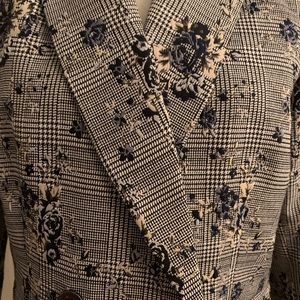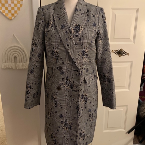 Calvin Klein plaid trench coat with flower detailing. Size 10 fits size M-L. LIKE NEW. WORN ONCE. GREAT CONDITION