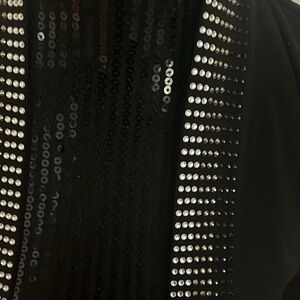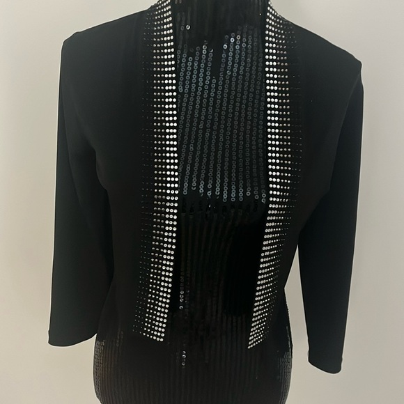 Black beaded trim Calvin Klein open front jacket. Perfect for wearing with a strapless dress or sleeveless outfit .