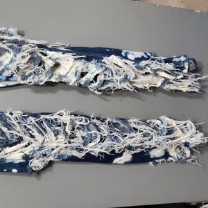 they're in pre owned they do have one stain on the bottom I did try to show it in the picture they are exceptionally distressed they are so distressed they're a holes in the pockets there are holes everywhere as always I do love offers and have an amazing day they kind of remind me of that Golden goose (S24)