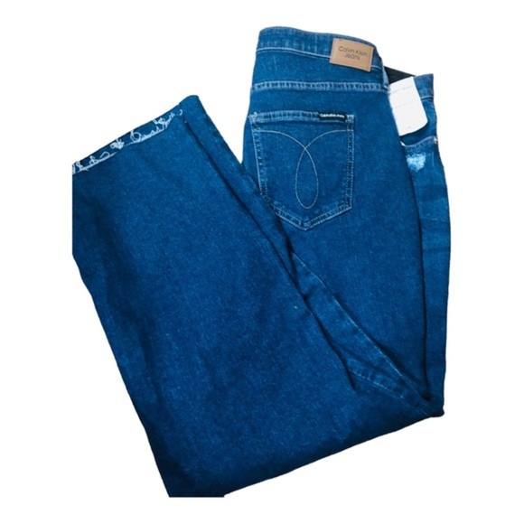 Calvin Klein jeans plus size hi rise straight distressed frayed hem jeans. Size 16W new