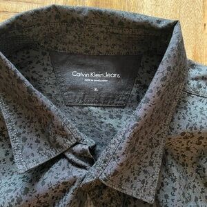 Calvin Klein jeans means 100% cotton denim floral button up down casual top NWOT XL